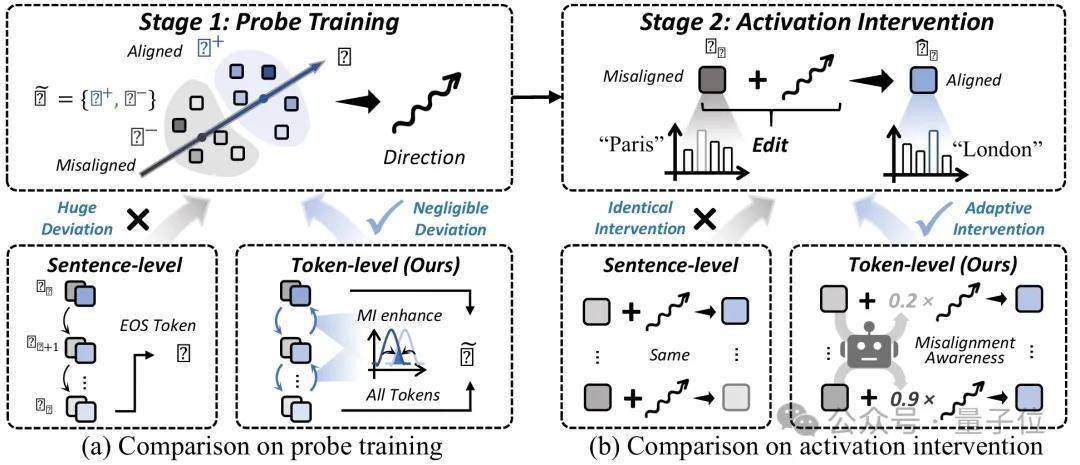 TAE:从“句子”到“词”的精细化干预研究团队指出,以往的表征编辑研究(如ITI、TruthX等)大多在句子级别进行激活值编辑,在编辑方向探寻和内部表征编辑两个主要阶段均存在问题: